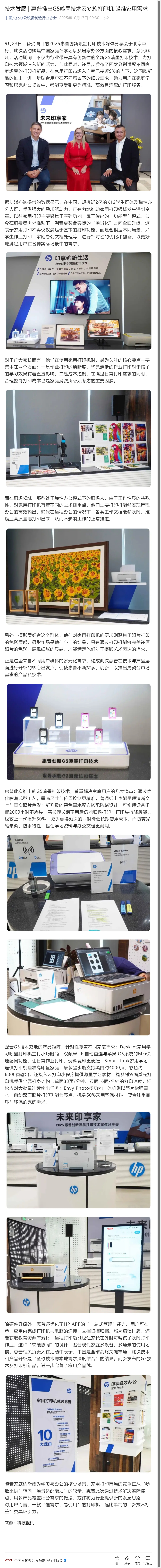 惠普推出G5喷墨技术及多款打印机 瞄准家用需求