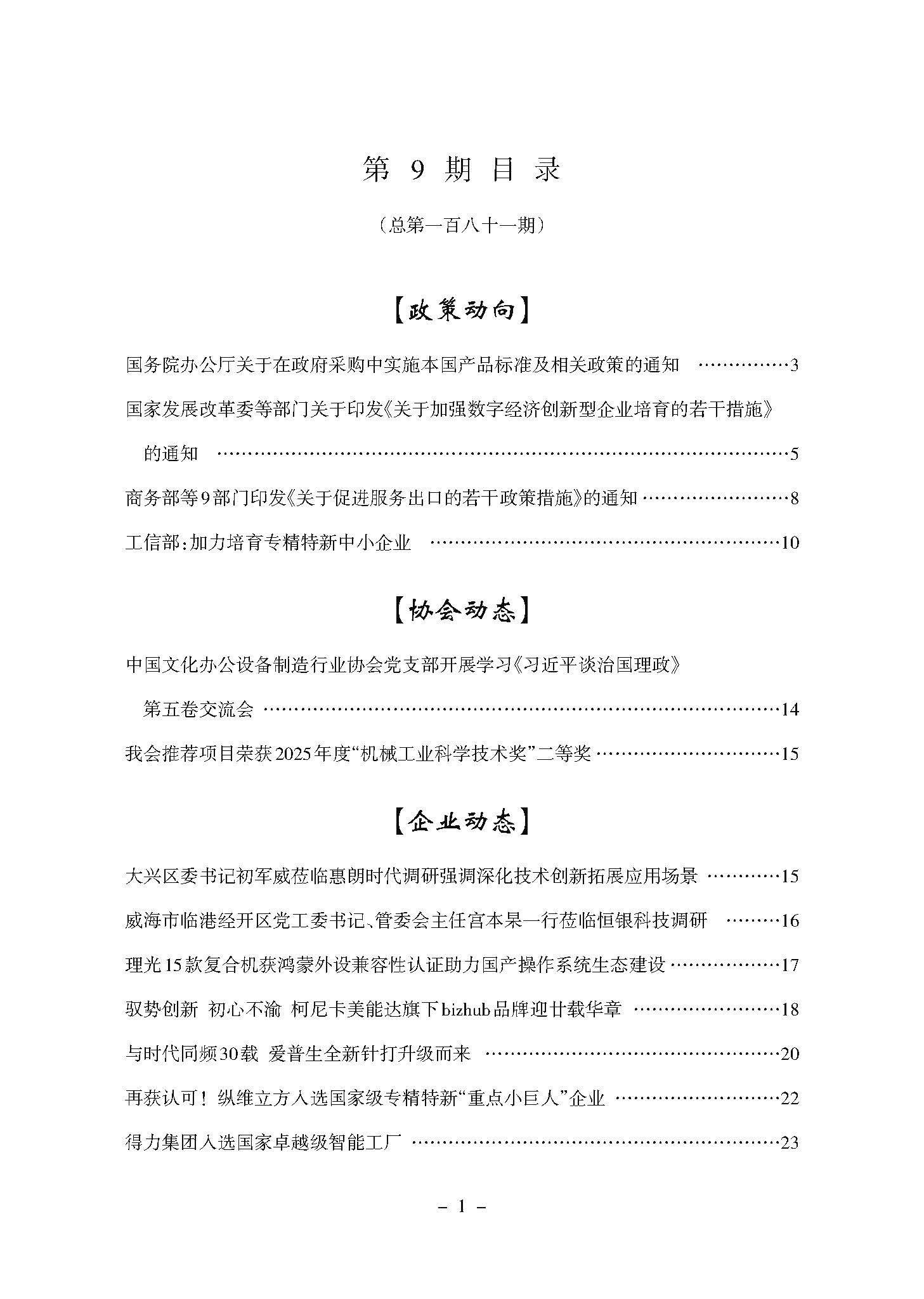 >> 文化办公设备制造行业信息 电子刊物 2025年9月 总第181期