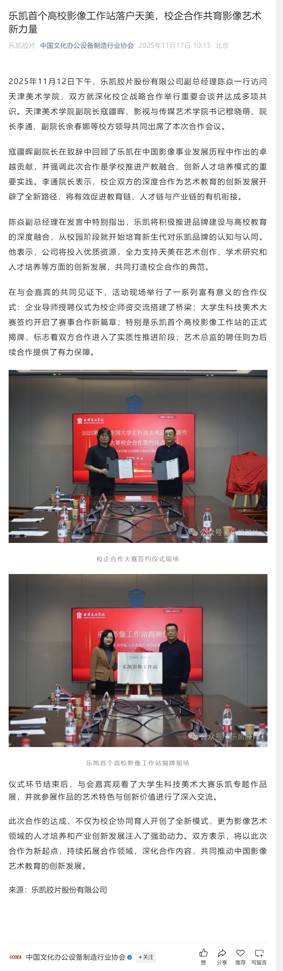 >> 乐凯首个高校影像工作站落户天美,校企合作共育影像艺术新力量