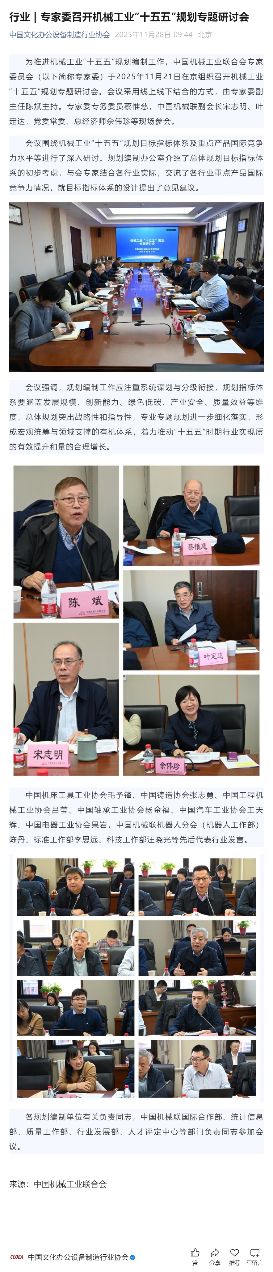 >> 专家委召开机械工业“十五五”规划专题研讨会