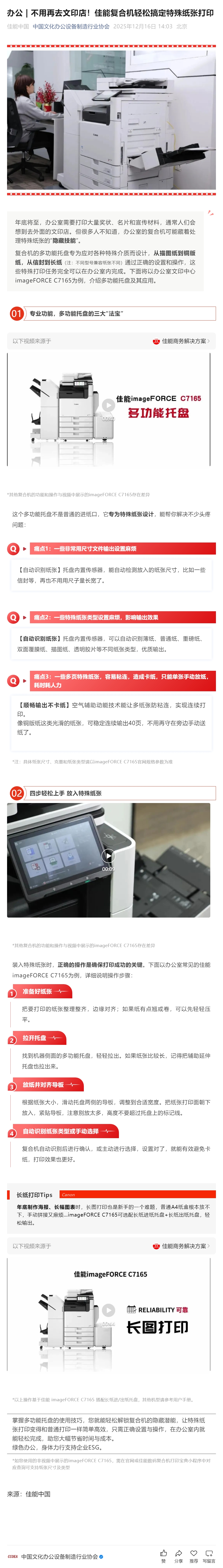 不用再去文印店!佳能复合机轻松搞定特殊纸张打印