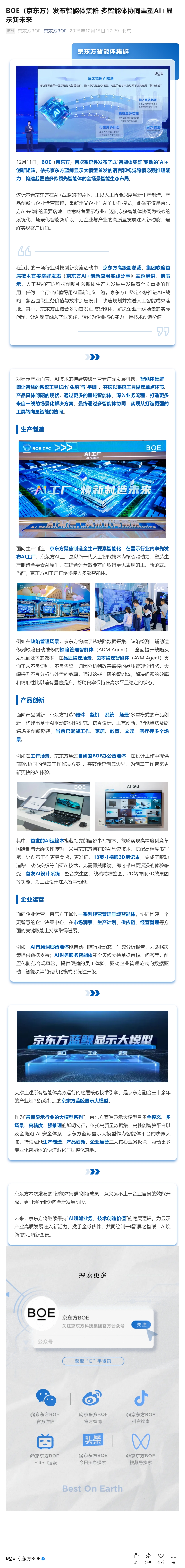 BOE(京东方)发布智能体集群 多智能体协同重塑AI+显示新未来