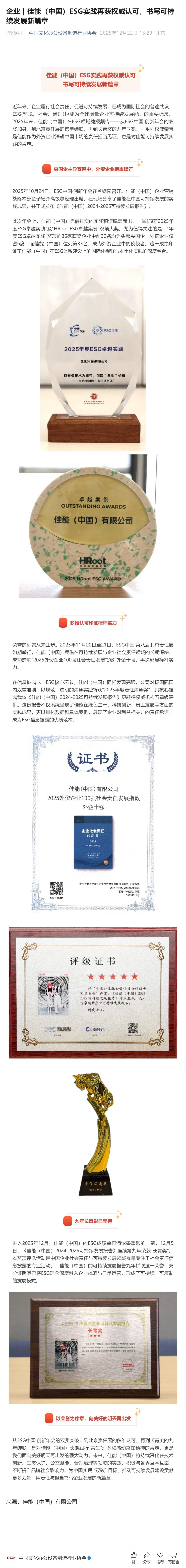 >> 佳能(中国)ESG实践再获权威认可,书写可持续发展新篇章