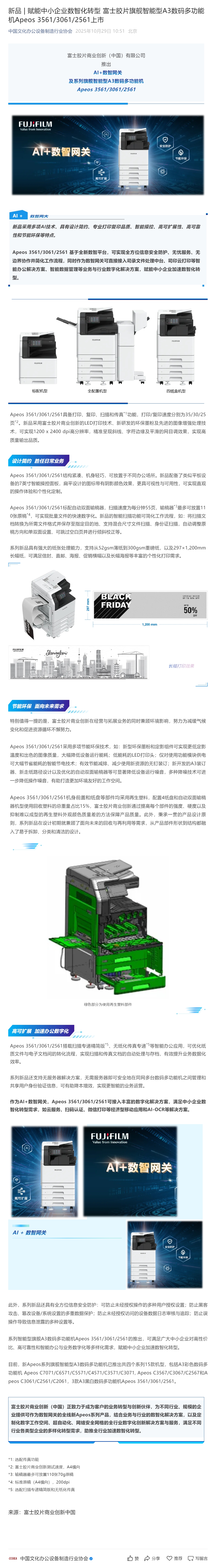 >> 赋能中小企业数智化转型 富士胶片旗舰智能型A3数码多功能机Apeos 3561_