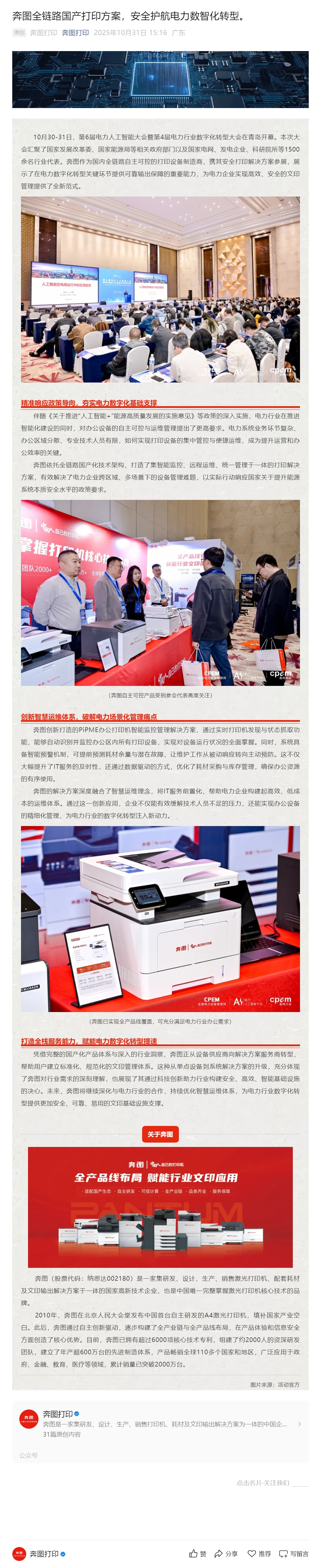 >> 奔图全链路国产打印方案,安全护航电力数智化转型