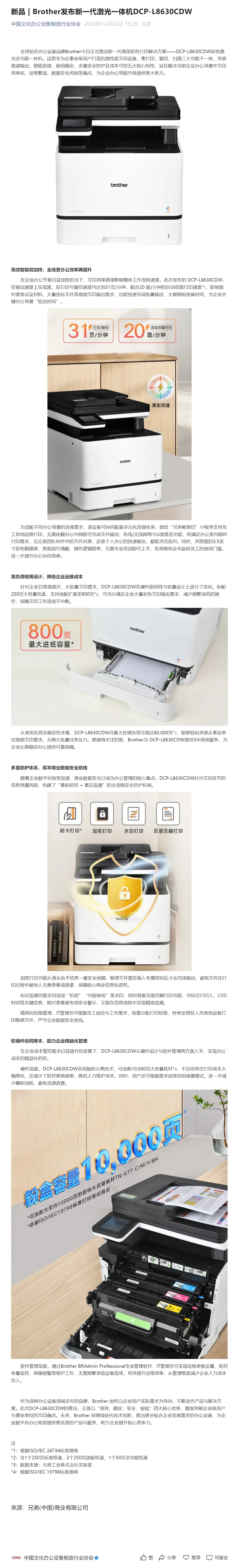 >> Brother发布新一代激光一体机DCP-L8630CDW