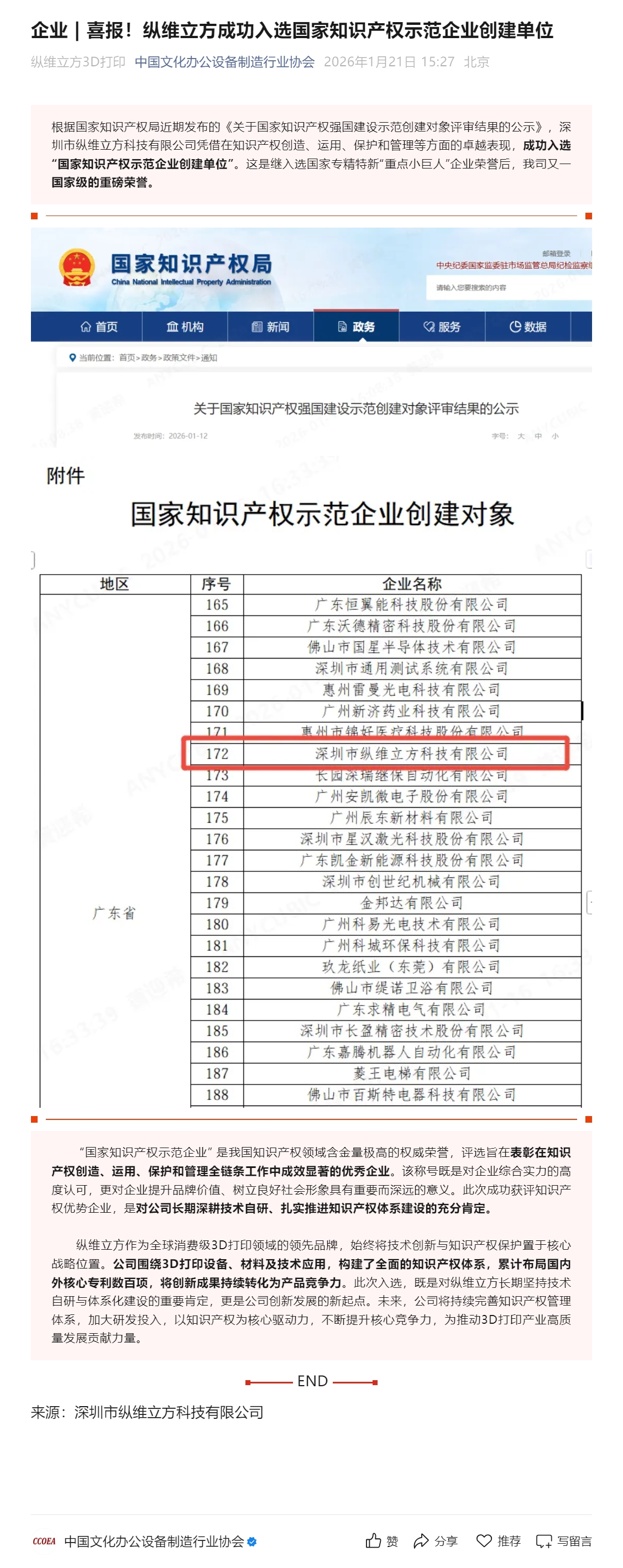 >> 喜报!纵维立方成功入选国家知识产权示范企业创建单位